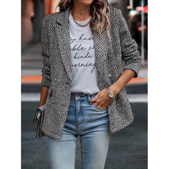 Double Breasted Lapel Blazer, Elegant Long Sleeve Blazer For Office & Work, Women's Clothing